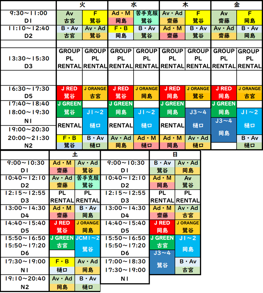 第114期 レッスンスケジュール